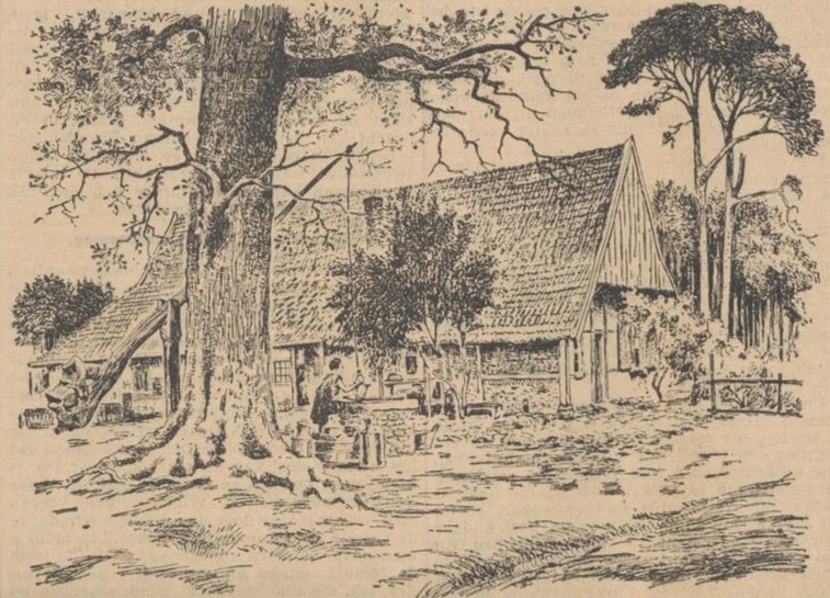 De dikke eik, de laatste, of zoo men wil ook de eerste boom van de laan, die langs het Walfort gaat, heeft even als de boerderij al veel meegemaakt. Hoeveel krijgsknechten, zoowel Munstersche als Geldersche, Staatsche of Spaansche ruiters zouden er wel langs deze laan hebben gereden en hoevelen hebben er, als gevonnisten van het veemgericht aan de takken gebengeld? Hoeveel malen heeft men langs deze oude boomen geslopen om een overval op de vesting Bredevoort te doen en hoeveel malen zijn er boosdoeners heengesleept om omhoog te worden geheschen? Ja, ’t is een romantisch land hier.
