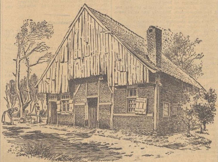 Deze voortreffelijke man woonde n.l. op een oude „deel”, een gedeelte van een oud boerenhuis midden in het stadje. Volgens oude Winterswijksche gewoonte staat het huis met het deel-gedeelte, dus het achterhuis, naar den openbaren weg. Zoo staan trouwens alle boerenhuizen. De woonvertrekken liggen van de straat afgekeerd. Deze deel is juist daarom zoo eigenaardig, omdat de oude gereedschappen daar nog worden gebruikt en dit komt, omdat het maar een „kleine bouwerije” is. De boer, die er woont, oefent het beroep van kleermaker uit.