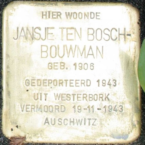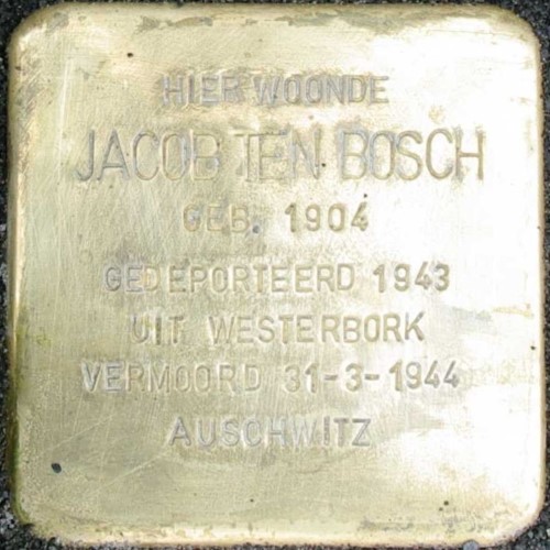 Slagerszoon Jacob ten Bosch uit Aalten trouwde op 17 oktober 1934 met de Rotterdamse Jansje Bouwman. Zij waren joods en vestigden zich na hun huwelijk aan de Hogestraat 3 en openden er een slagerij. Na de bezetting van Nederland tijdens WW2, moesten joodse ondernemers hun winkels sluiten.