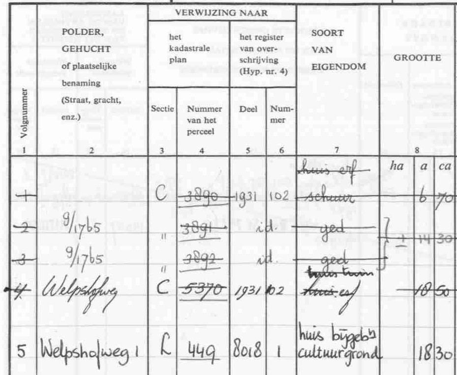 | Jaar | Perceel | Eigenaar | Omschrijving |