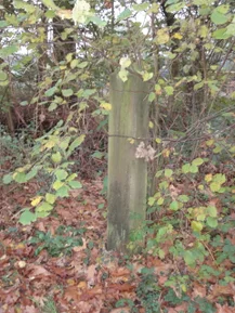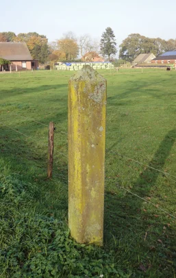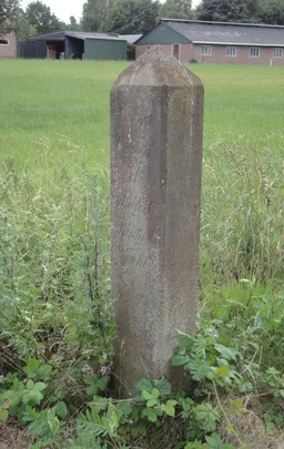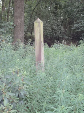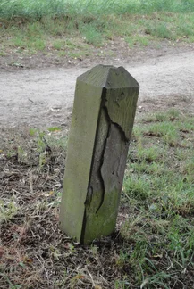 The hunting posts are made of red sandstone, presumably sourced from quarries in the vicinity of the Weser or the Main rivers. Their total length is 2.5 to 3 metres. The posts are rectangular (approx. 25 x 20 cm) with chamfered corners. The top is a four-sided pyramid. In terms of finish, they are gefrijnd: horizontally ribbed. On one side, there is a rectangular, smoothly finished field containing the text: “Havezate Walvoort of Walfort Privative Jacht”. Several of the remaining posts are either damaged or have been shortened.